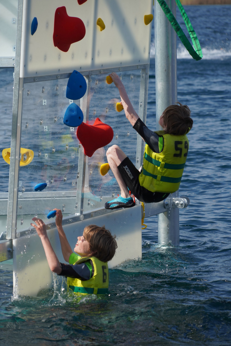 Escalader et vivre chaque sensation à 100% pour zéro risque. Basé sur la même philosophie que le système Hydroclimb, le Psychobloc d’Hydroclimb est un mur d’escalade conçu pour être installé au-dessus d’un plan d’eau, permettant aux grimpeurs de progresser sans harnais ni cordes. La chute se fait directement dans l’eau, offrant une expérience à la fois sportive et ludique.